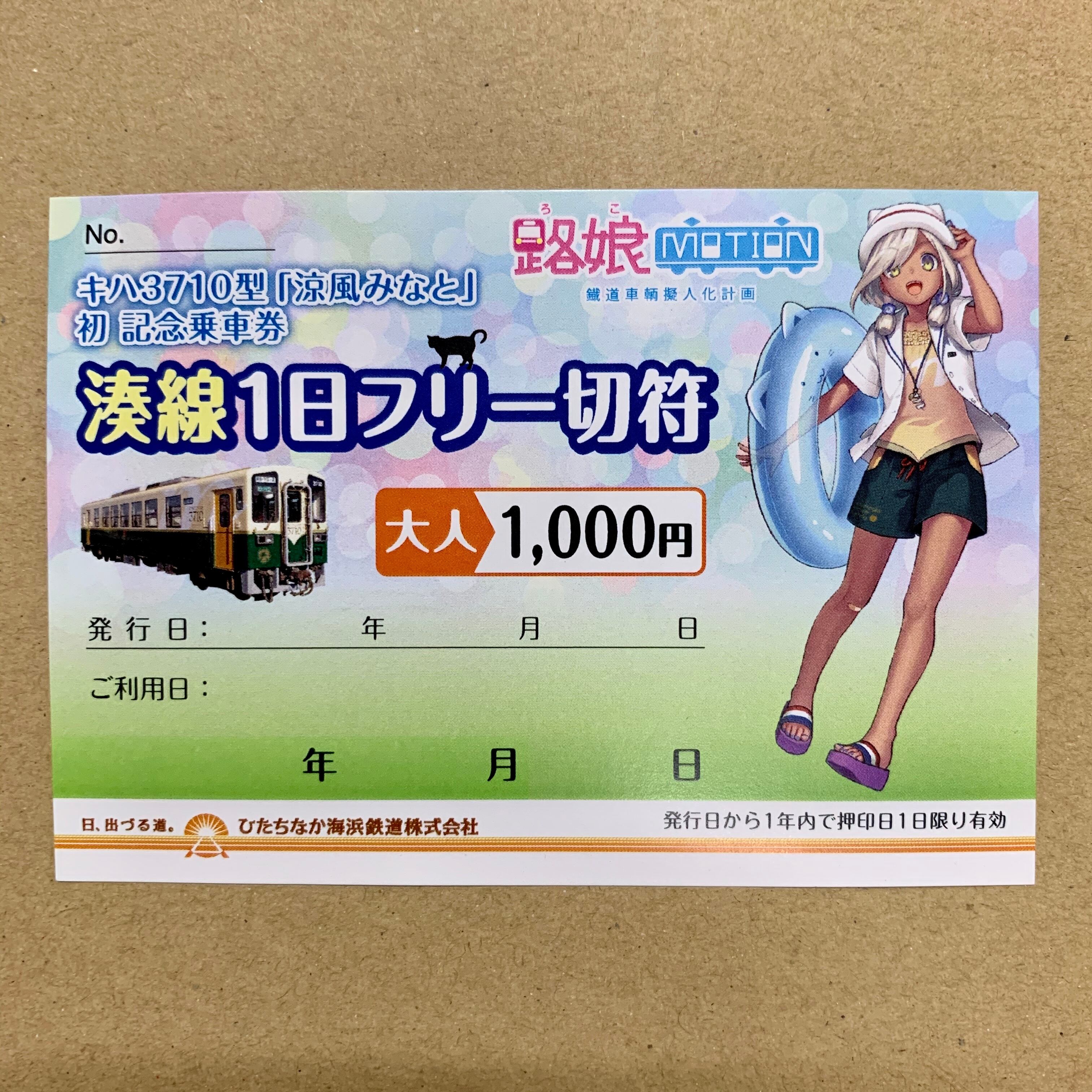 ひたちなか海浜鉄道所有の車両「キハ3710型」をモチーフとした路娘モーションキャラクター「涼風みなと」を使用した初めての乗車券「湊線1日フリー切符」を発売いたします。